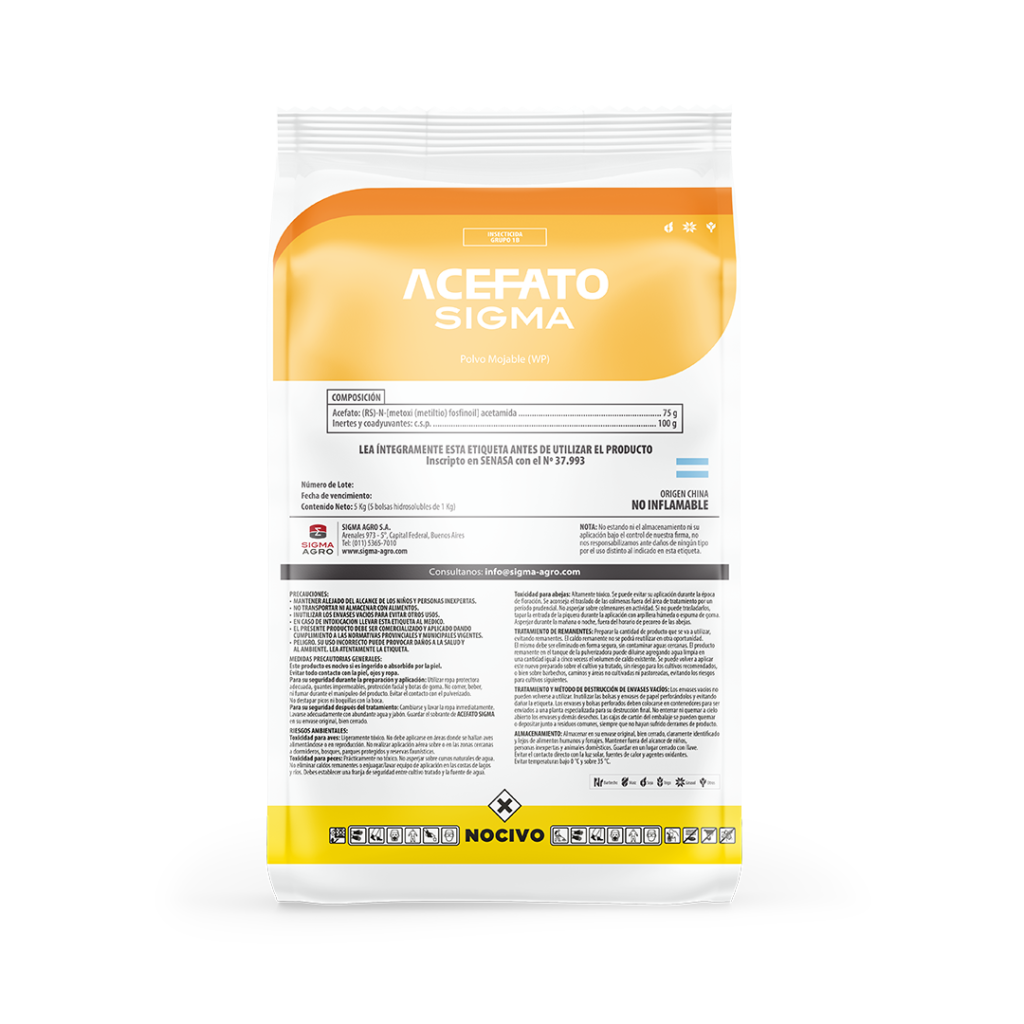 ACEFATO SIGMA ES UN INSECTICIDA ORGANOFOSFORADO SISTΓMICO SOLUBLE EN AGUA QUE PROTEGE A LAS PLANTAS DE LOS ATAQUES DE INSECTOS.