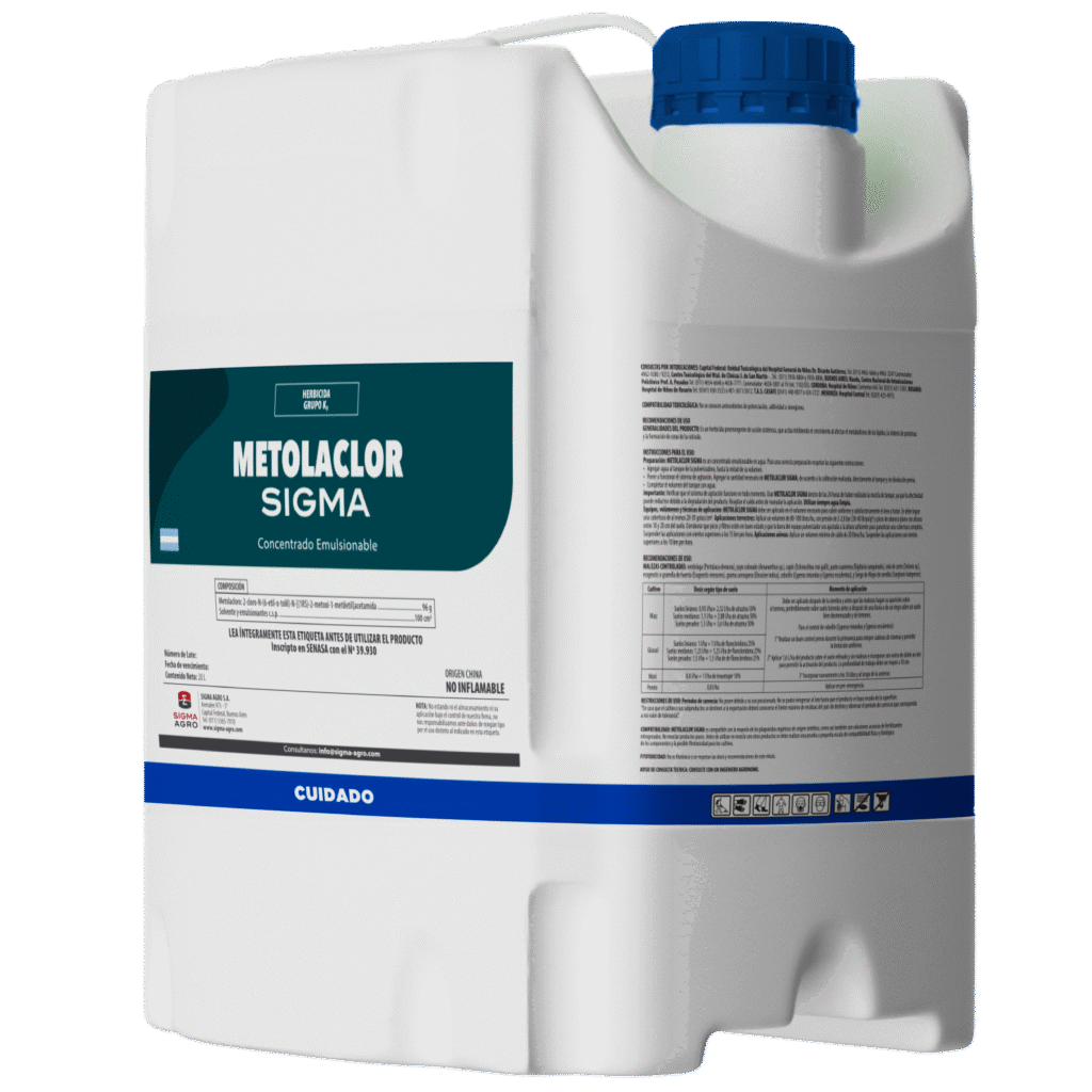 METOLACLOR SIGMA ES UN HERBICIDA PREEMERGENTE DE ACCIΓN SISTΓMICA, QUE ACTΓA INHIBIENDO EL CRECIMIENTO AL AFECTAR EL METABOLISMO DE LOS LΓPIDOS, LA SΓNTESIS DE PROTEΓNAS Y LA FORMACIΓN DE CERAS DE LA CUTΓCULA.