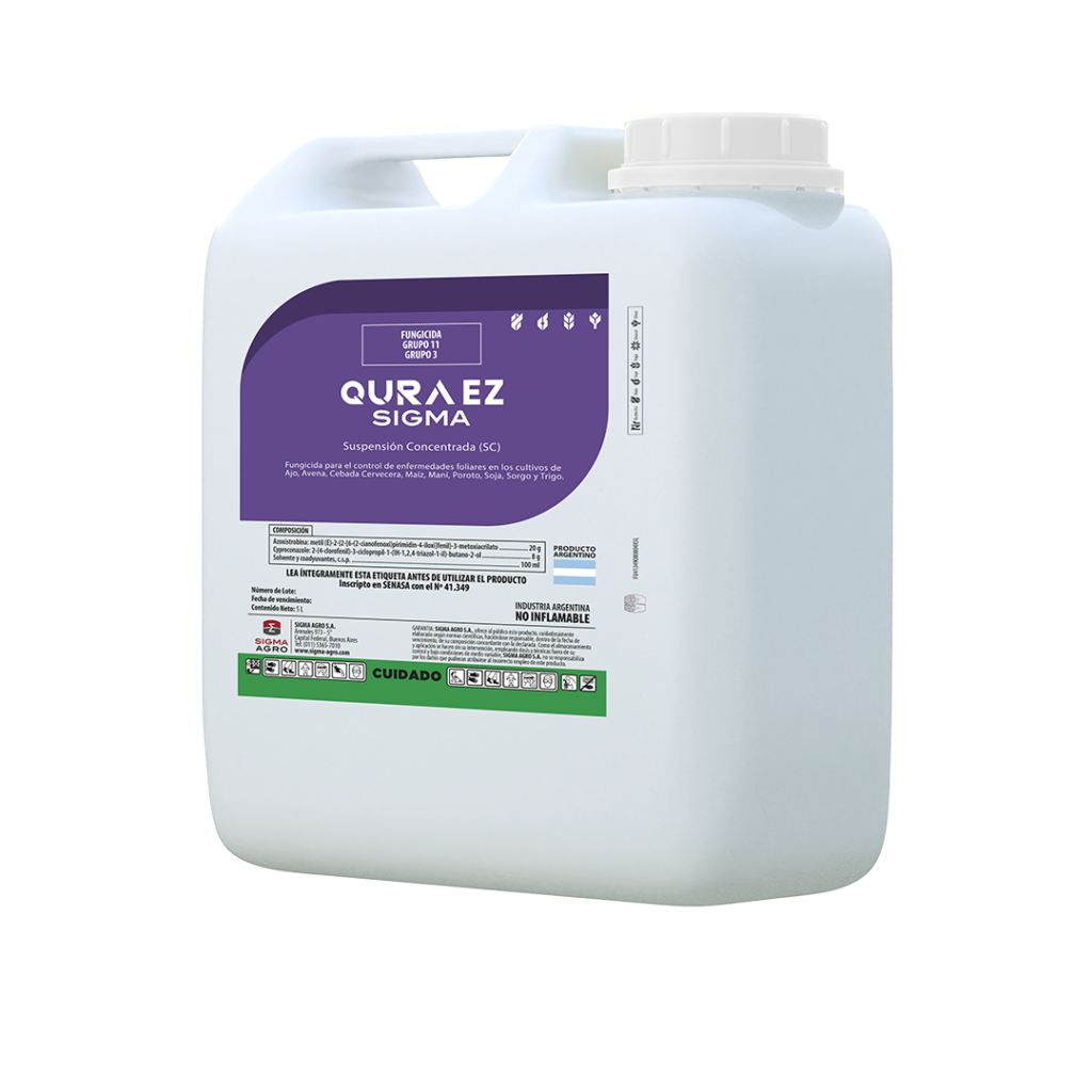 QURA EZ SIGMA combina la acciΓ³n preventiva y antiesporulante de azoxistrobina, perteneciente al grupo de las estrobilurinas, con el efecto curativo y erradicante de cyproconazole, perteneciente al grupo de los triazoles. FUNGICIDA PREVENTIVO, CURATIVO Y ERRADICANTE.